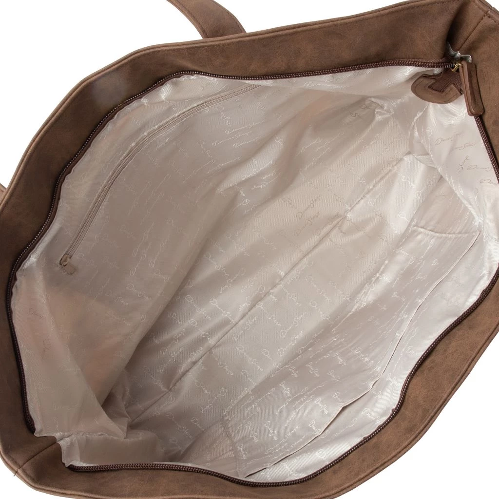 - Tote handbag with zipper closure for added security